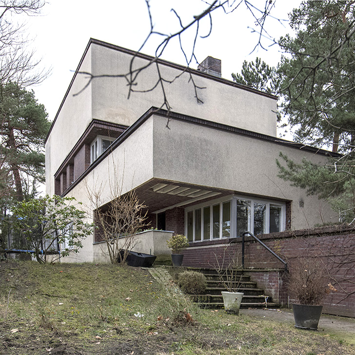 Erich Mendelsohn fand schon früh durch seine Bauten, u.a. durch den Einstein-Turm in Potsdam große Beachtung. Der WOGA-Komplex mit dem Universum-Kino am oberen Kurfürstendamm – heute Haus der Schaubühne -, die Kaufhäuser in Nürnberg, Stuttgart, Breslau und Chemnitz sowie das Columbus-Haus am Potsdamer Platz, aber auch Wohnbauten wie das Haus Bejach und das Doppelhaus am Karolingerplatz trugen zu seinem internationalen Ruf bei. Gleichwohl blieben jüdische Auftragnehmer prägend für Mendelsohns Lebenswerk. Schon im April 1933, drei Monate nach der Machtübernahme der Nationalsozialisten und sechs Monate vor seinem Ausschluss aus den Berufsverbänden, verließ Mendelsohn mit seiner Frau Deutschland und emigrierte – anders als seine Sympathie für den Zionismus dies nahelegte – zunächst nach England und ab 1939 nach Palästina. 1941 wanderte er in die USA aus. „Nachdem er sein Geburtsland und den Boden seiner Kindheitserinnerungen auf Nimmerwiedersehen verlassen musste, blieb er heimatlos für den Rest seines Lebens“ (Ita Heinze-Greenberg). Im Exil konnte Mendelsohn seine Karriere, anders als fast alle verfolgten jüdischen Architekten, nahtlos fortsetzen und starb 1953 – bis zum Schluss beruflich und akademisch voll aktiv.